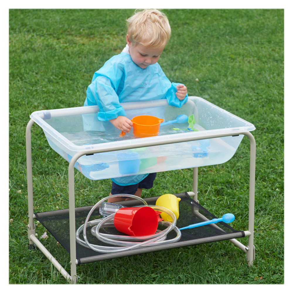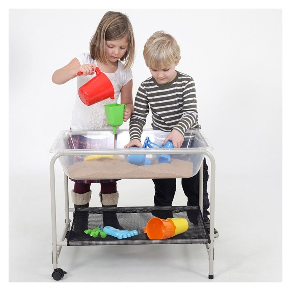 - A homok- és víztálca elősegíti az érzékszervi és interaktív játékot, segít megérteni a STEM fogalmait, beleértve a súlyt, a felhajtóerőt és a víz mozgását.