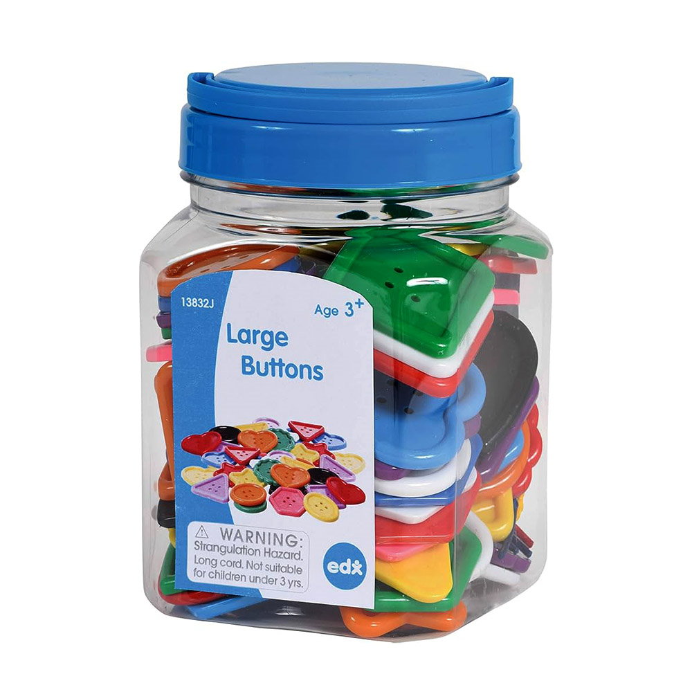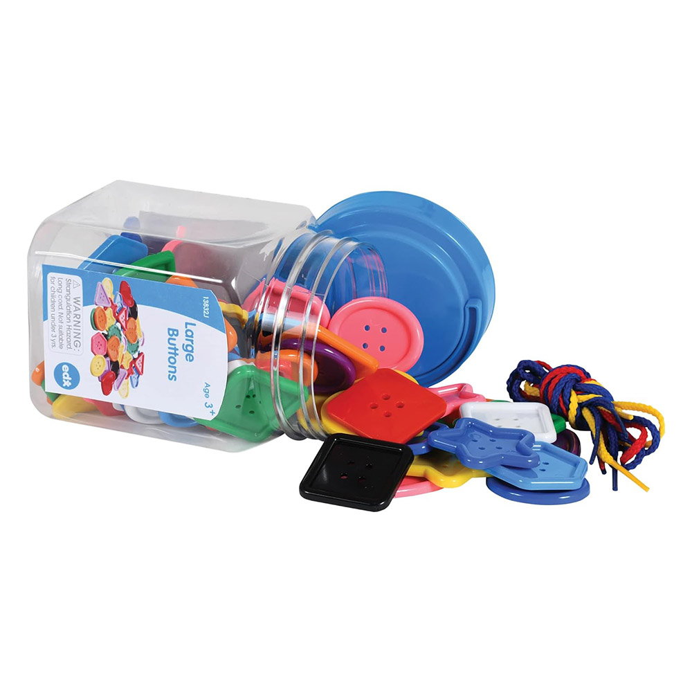 - Különböző formájú és színű, nagyméretű gombokat tartalmaz 4 színes fűzővel együtt.