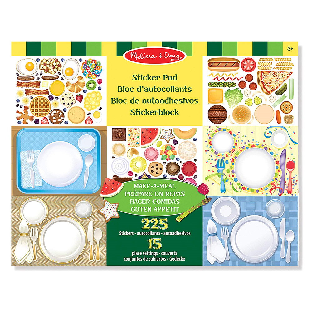 - A készlet 225 ételt és italt ábrázoló matricát tartalmaz, köztük öt ételcsoportot, így a kicsik könnyedén kombinálhatják őket, hogy változatos és kiegyensúlyozott ételt készítsenek.