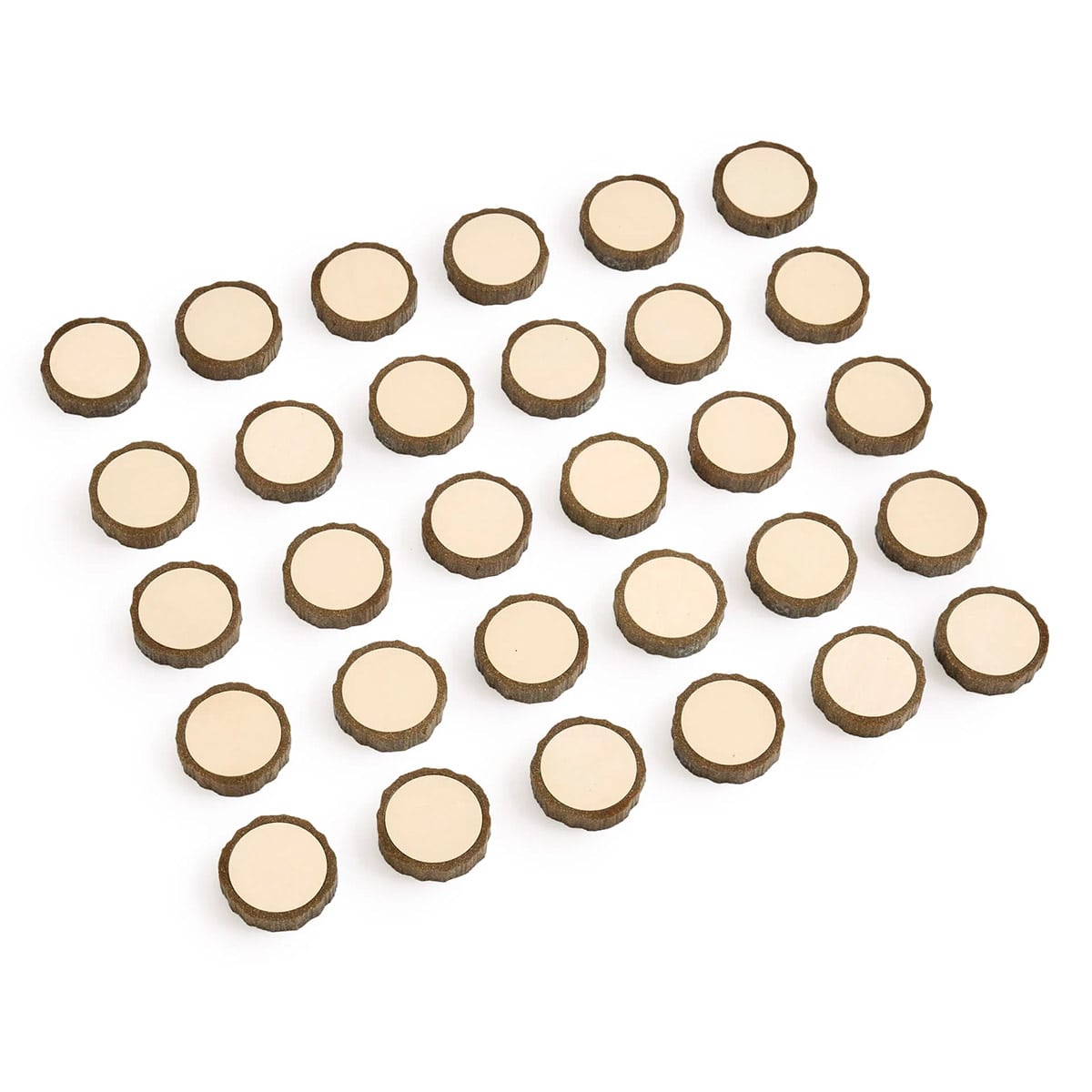 - A fából készült sütikre emlékeztető korongok texturált szélekkel rendelkeznek, amelyek a fakérget utánozzák.