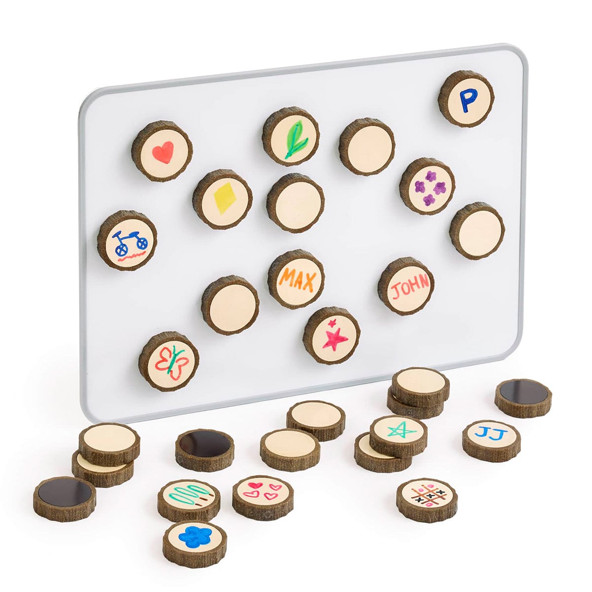 - Minden darab szárazon törölhető filctoll írófelülettel és mágneses hátlappal rendelkezik, így bármilyen fém felületre – táblára, hűtőszekrényre, mágneses tálcákra stb. – helyezhetők.