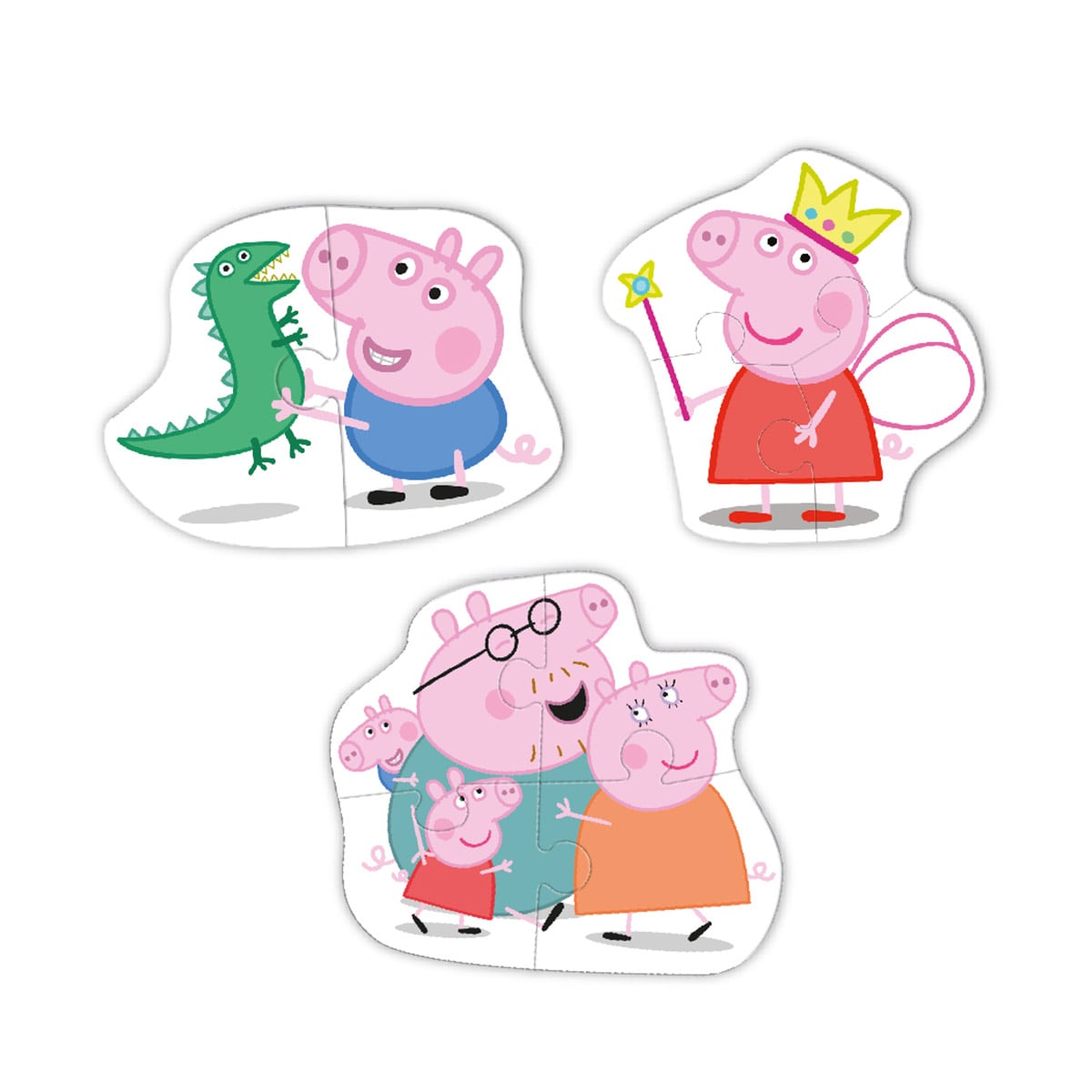 - A kicsik örömmel állíthatják össze a 3 képet, és felfedezhetik szeretett karaktereiket: Peppa malac tündérjelmezében, George kedvenc játékával és Peppa családja szorosan ölelkezve.
