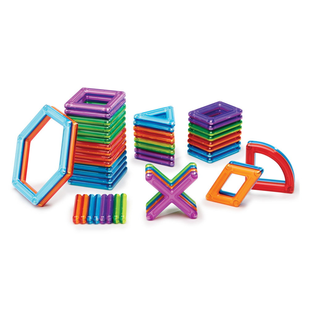 - A készlet 48 mágneses darabot tartalmaz, 8 különböző formában és színben, amelyek korlátlan konstrukciós lehetőségeket teremtenek, valamint egy prospektust mintákkal ihletként.