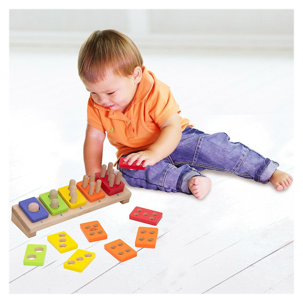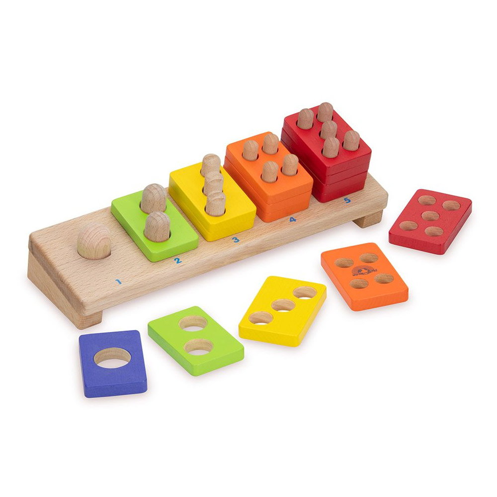 - A megfelelő darabok száma megegyezik a lyukak és rudak számával, valamint a rudak aljára nyomtatott számmal. A játék minőségi, természetes kaucsukfából készült, vízalapú festékekkel és lakkokkal van színezve, nem mérgező és biztonságos a gyermekek számára.