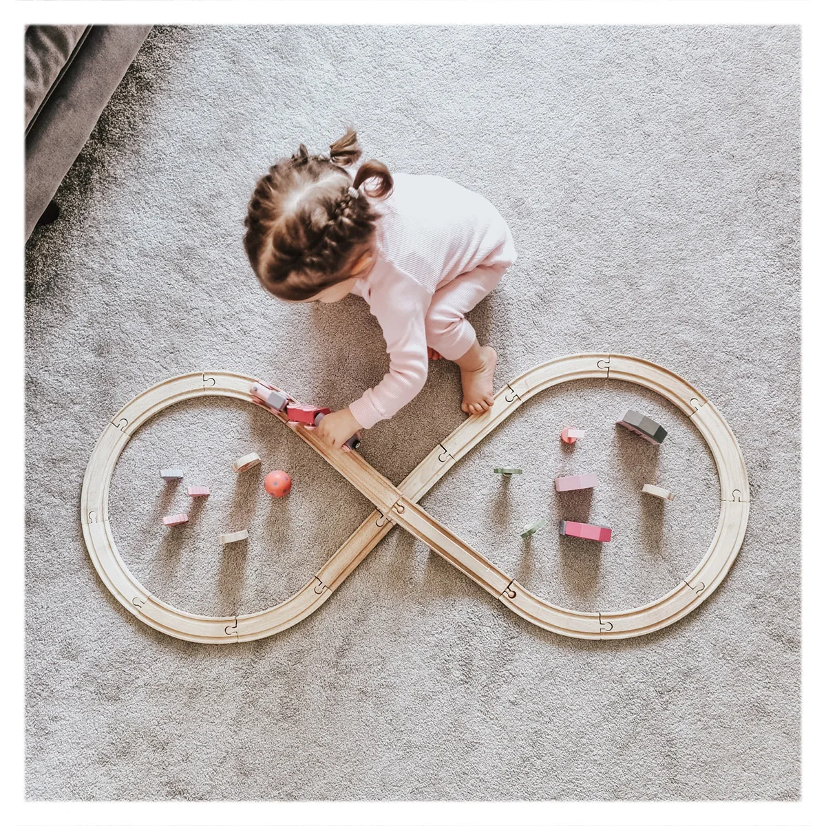 A nyolcas alakú pálya intuitívan építhető meg, így a gyerekek könnyedén felfedezhetik a vonat mozgását és a környezetet, miközben fejlődik a térlátásuk és a finommotoros készségeik.