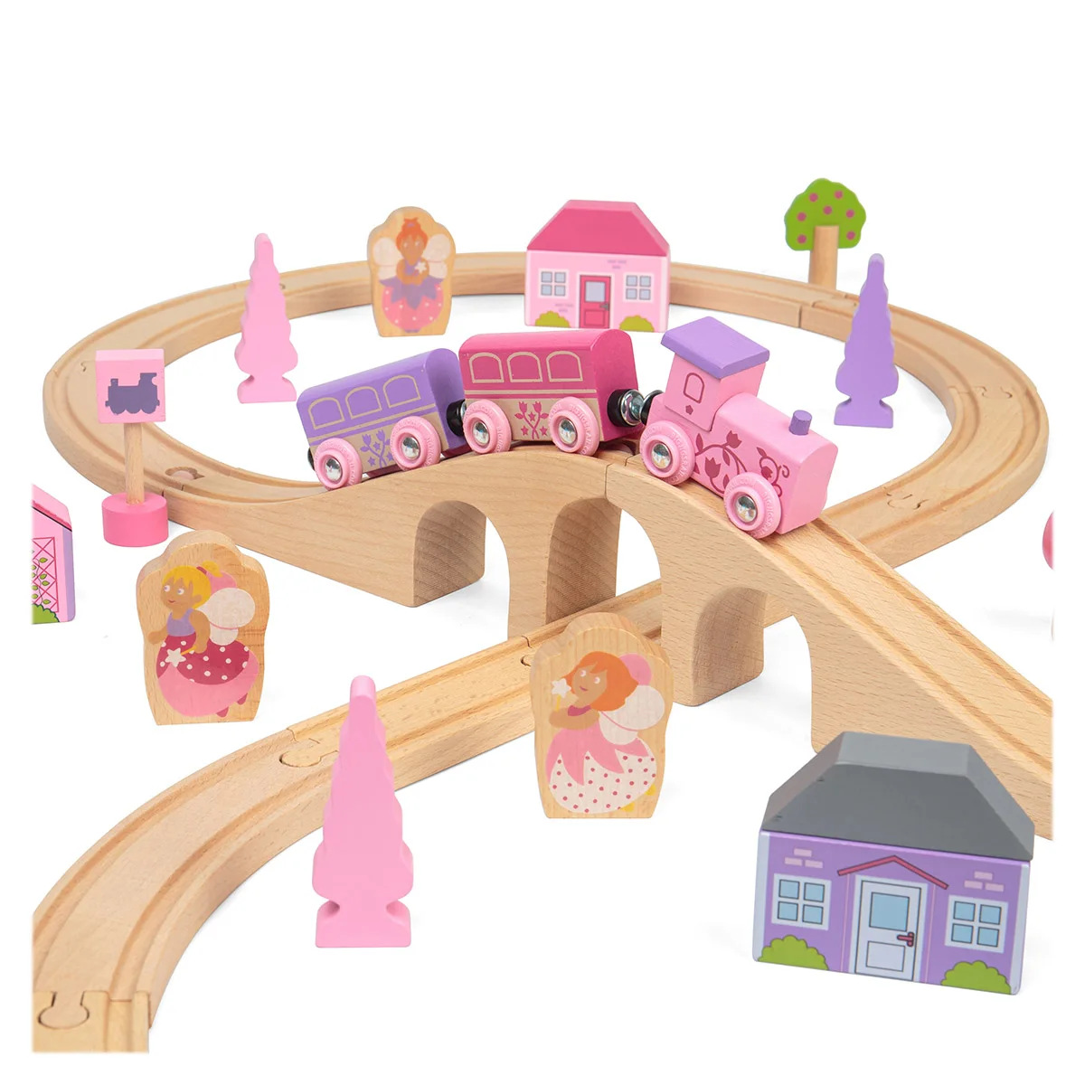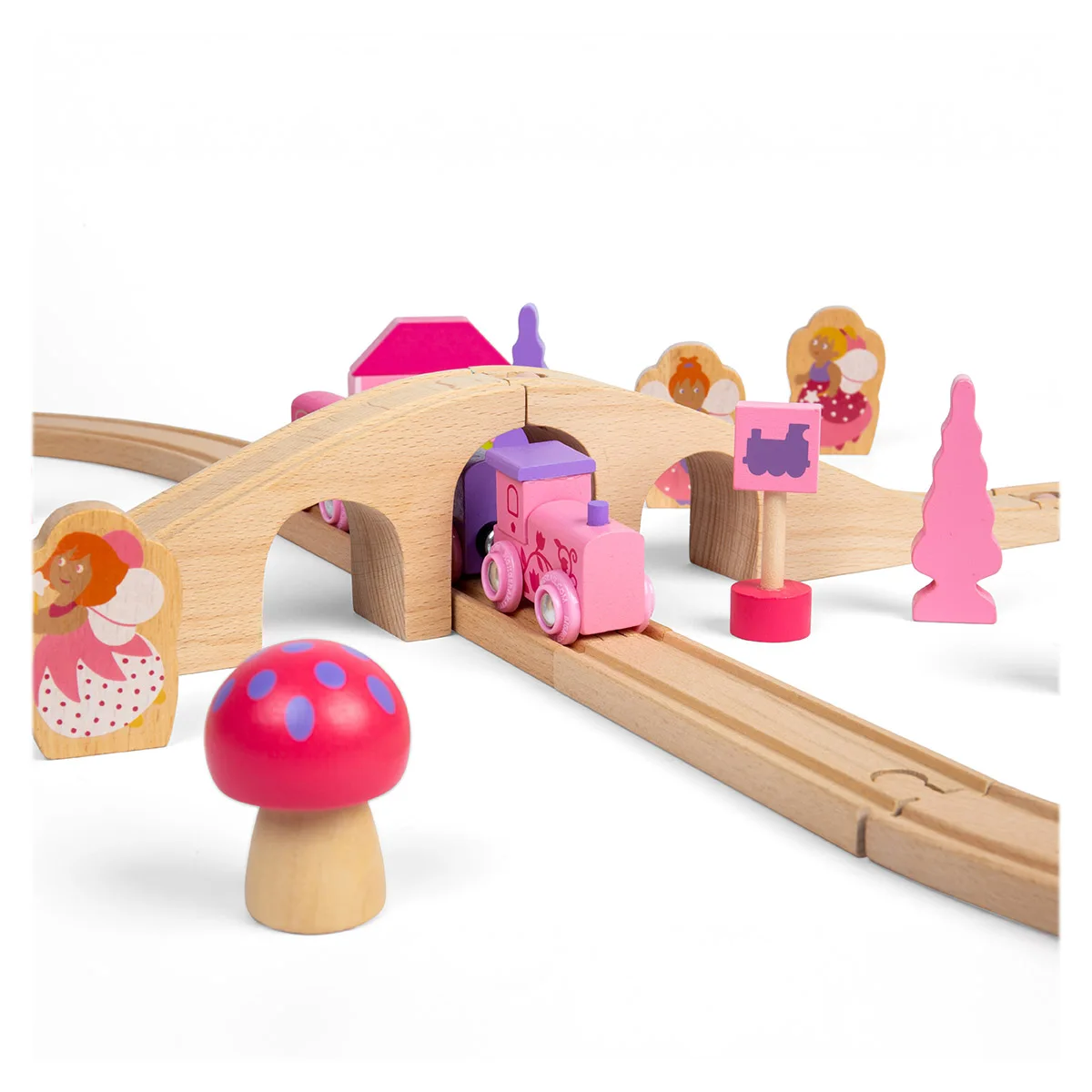 Egy klasszikus fakockás vasútkészlet, amely nemcsak játék, hanem élmény is. A tündéres témájú, pink és pasztell elemekkel gazdagított készlet örömteli felfedezést és fejlesztő játékot kínál minden gyermek számára.