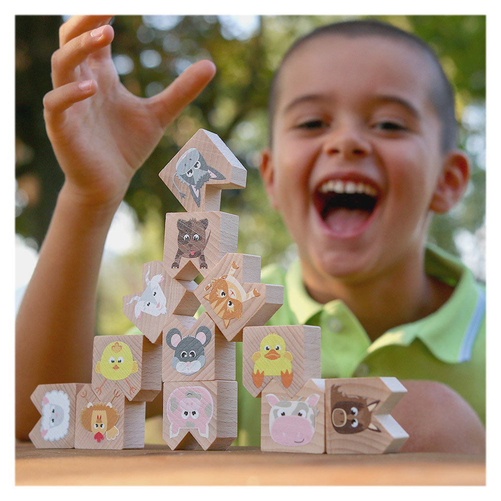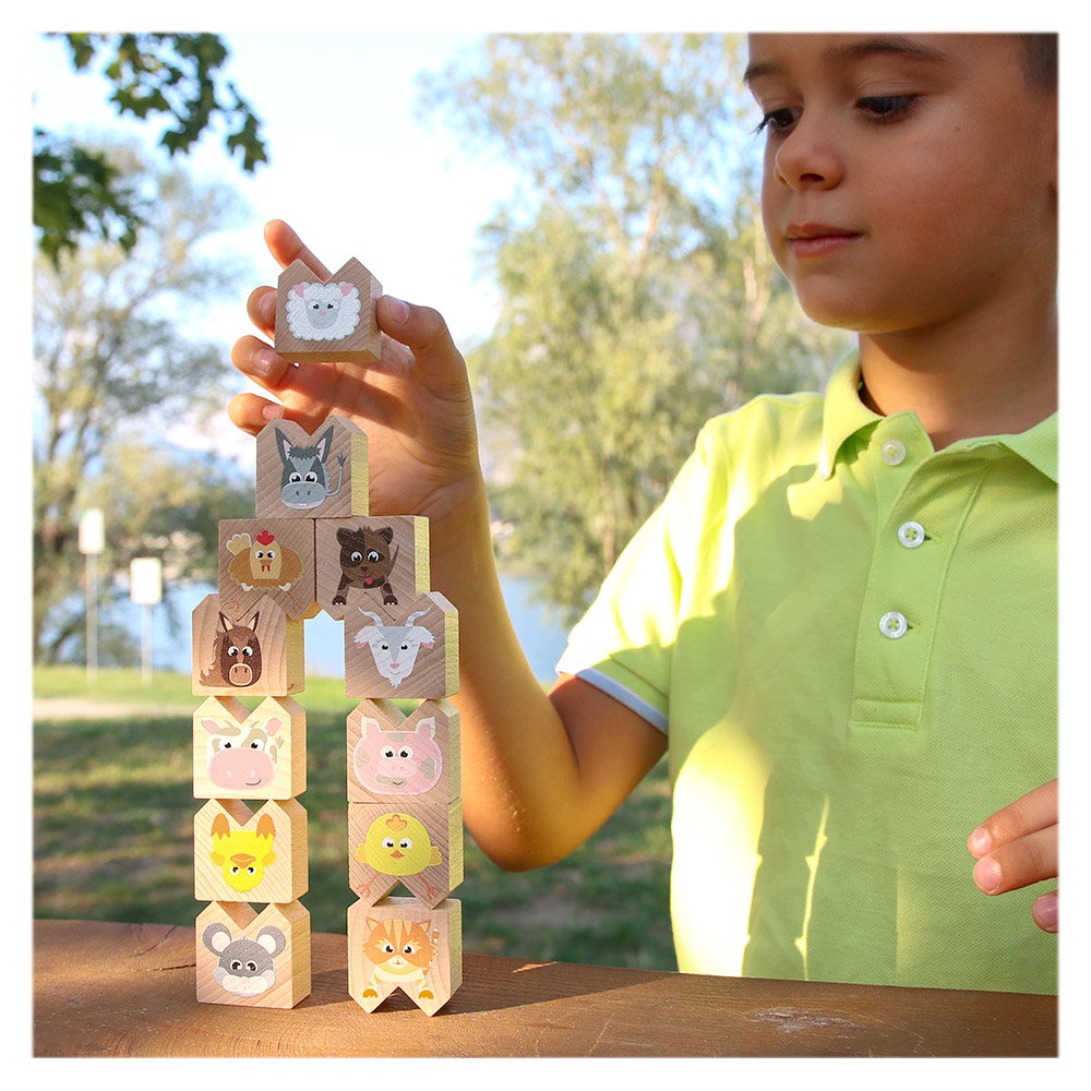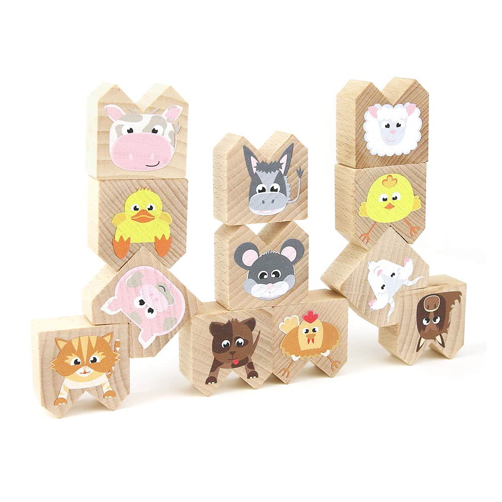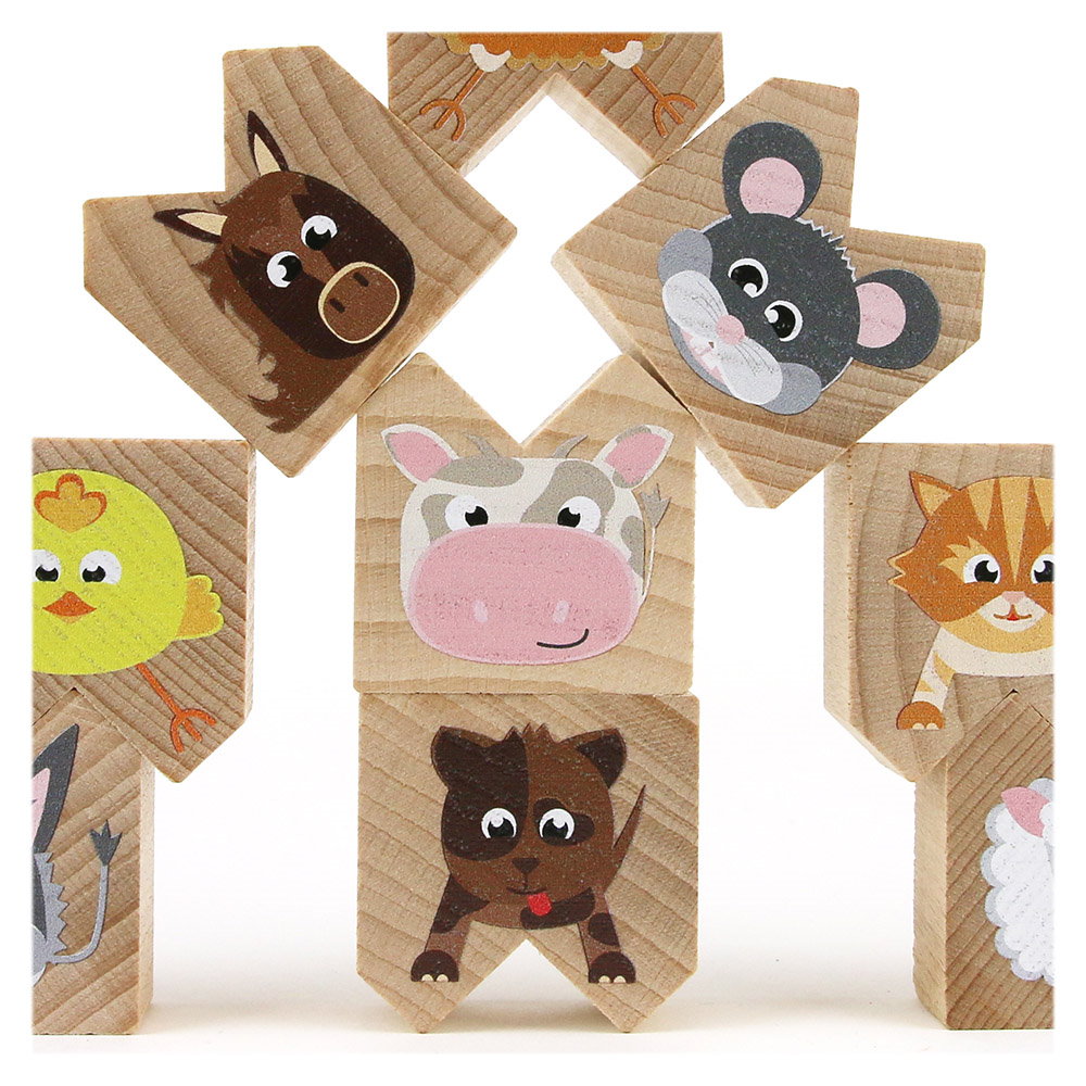 - A készlet tartalma: 12 db háziállatot ábrázoló fahasáb.