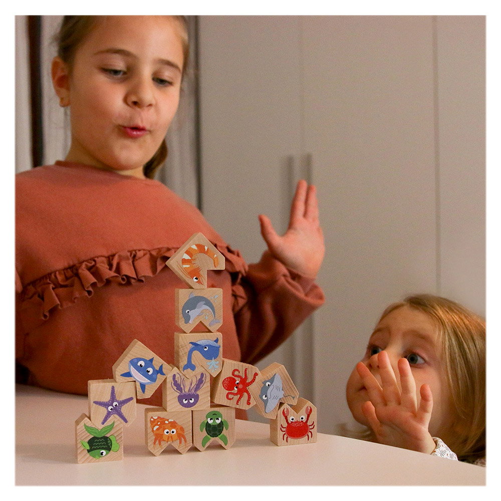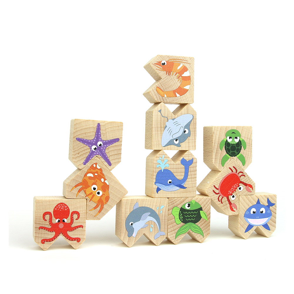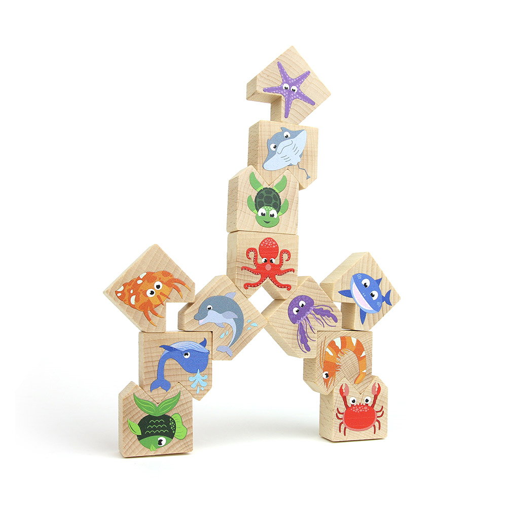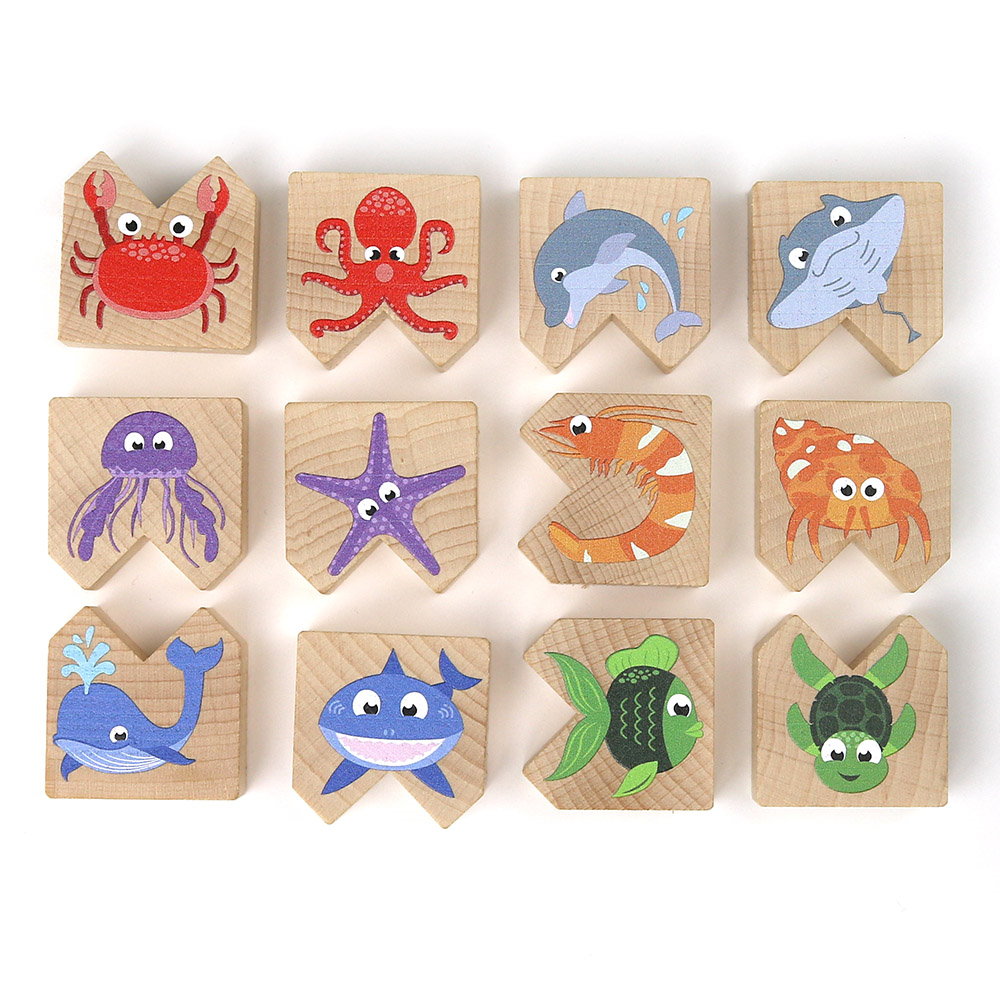 - A készlet tartalma: 12 db kiváló minőségű fahasáb, vízi állatokat ábrázolva.